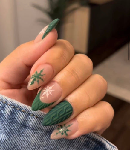 Green Snowflake Sweater Christmas Nails